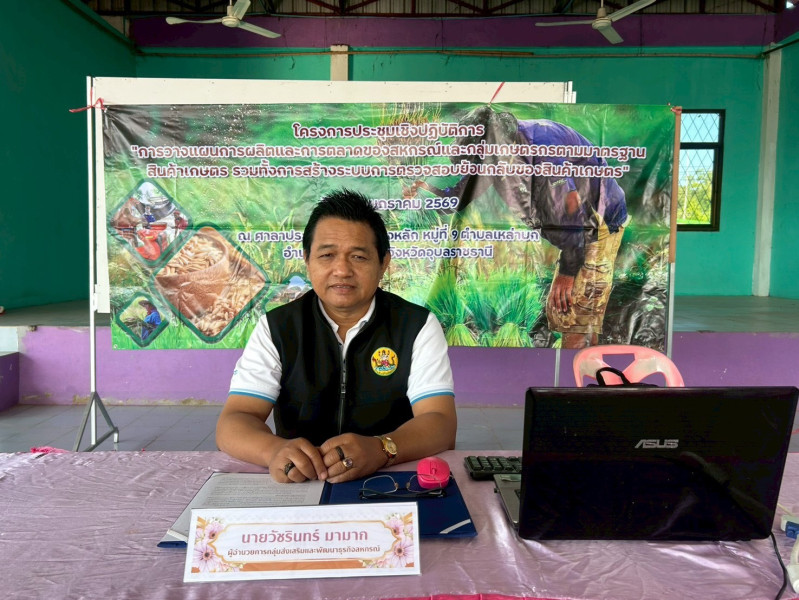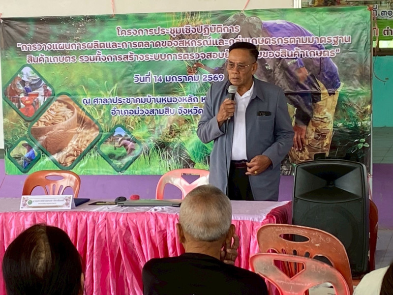 วันที่ 14 มกราคม 2569 นางสาวทรายทอง ประดับศรี สหกรณ์จังหวัดอุบลราชธานีเป็นประธานเปิดการประชุมเชิงปฏิบัติการ “การวางแผนการผลิตและการตลาดของสหกรณ์และกลุ่มเกษตรกรตามมาตรฐานสินค้าเกษตร รวมทั้งการสร้างระบบการตรวจสอบย้อนกลับของสินค้าเกษตร” ณ ศาลาประชาคมบ้านหนองหลัก หมู่ 9 ต.เหล่าบก อ.ม่วงสามสิบ จ.อุบลราชธานี วัตถุประสงค์เพื่อส่งเสริมและสนับสนุนสมาชิกเกษตรกรผลิตสินค้าเกษตร