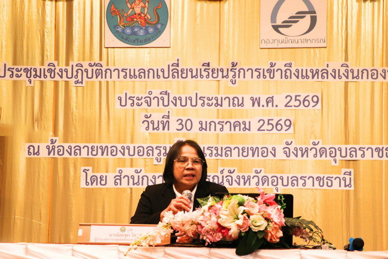วันที่ 30 มกราคม 2569 ร้อยตรีสรมงคล มงคละสิริ รองผู้ว่าราชการจังหวัดอุบลราชธานี เป็นประธานในพิธีเปิดโครงการประชุมเชิงปฏิบัติการแลกเปลี่ยนเรียนรู้การเข้าถึงแหล่งเงินกองทุนพัฒนาสหกรณ์ประจำปงบประมาณ พ.ศ. 2569 ณ ห้องลายทองบอลรูม โรงแรมลายทอง ตำบลในเมือง อำเภอเมืองอุบลราชธานี จังหวัดอุบลราชธานี วัตถุประสงค์ในการจัดโครงการเพื่อเป็นการเตรียมความพร้อมให้กับสหกรณ์รายเดิมและสหกรณ์รายใหม่ได้ทราบและเข้าใจกระบวนการกู้ยืมเงินกองทุนพัฒนาสหกรณ์ การจัดทำแผนงาน/โครงการ จัดทำเอกสารประกอบคำขอกู้รวมทั้งกระบวนการติดตามเร่งรัดการชำระหนี้ให้สหกรณ์สามารถส่งชำระคืนเงินกองทุนพัฒนาสหกรณ์ได้ โดยในปีงบประมาณ พ.ศ. 2569 จังหวัดอุบลราชธานีได้รับการจัดสรรเงินกองทุนพัฒนาสหกรณ์โครงการปกติ 194 ล้านบาท และโครงการพิเศษ 70.45 ล้านบาท รวม 264.45 ล้านบาท เป้าหมายโครงการฯ ประกอบด้วยผู้แทนสหกรณ์ (ประธานกรรมการสหกรณ์ กรรมการสหกรณ์ ผู้จัดการสหกรณ์ เจ้าหน้าที่สหกรณ์) และข้าราชการ พนักงานราชการที่ปฏิบัติงานเกี่ยวข้องกับกองทุนพัฒนาสหกรณ์ รวม 90 คน
