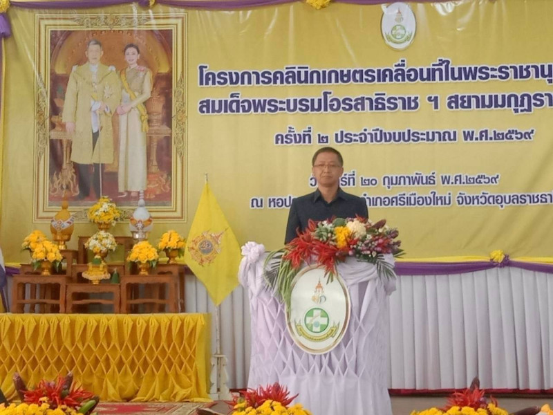 วันที่ 20 กุมภาพันธ์ 2569 นายภูษิต น้อยโสภากุล รองผู้ว่าราชการจังหวัดอุบลราชธานี เป็นประธานในพิธีเปิดโครงการคลินิกเกษตรเคลื่อนที่ในพระราชานุเคราะห์ สมเด็จพระบรมโอรสาธิราช ฯ สยามมกุฎราชกุมาร